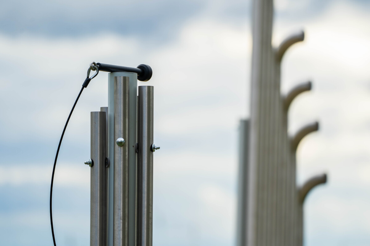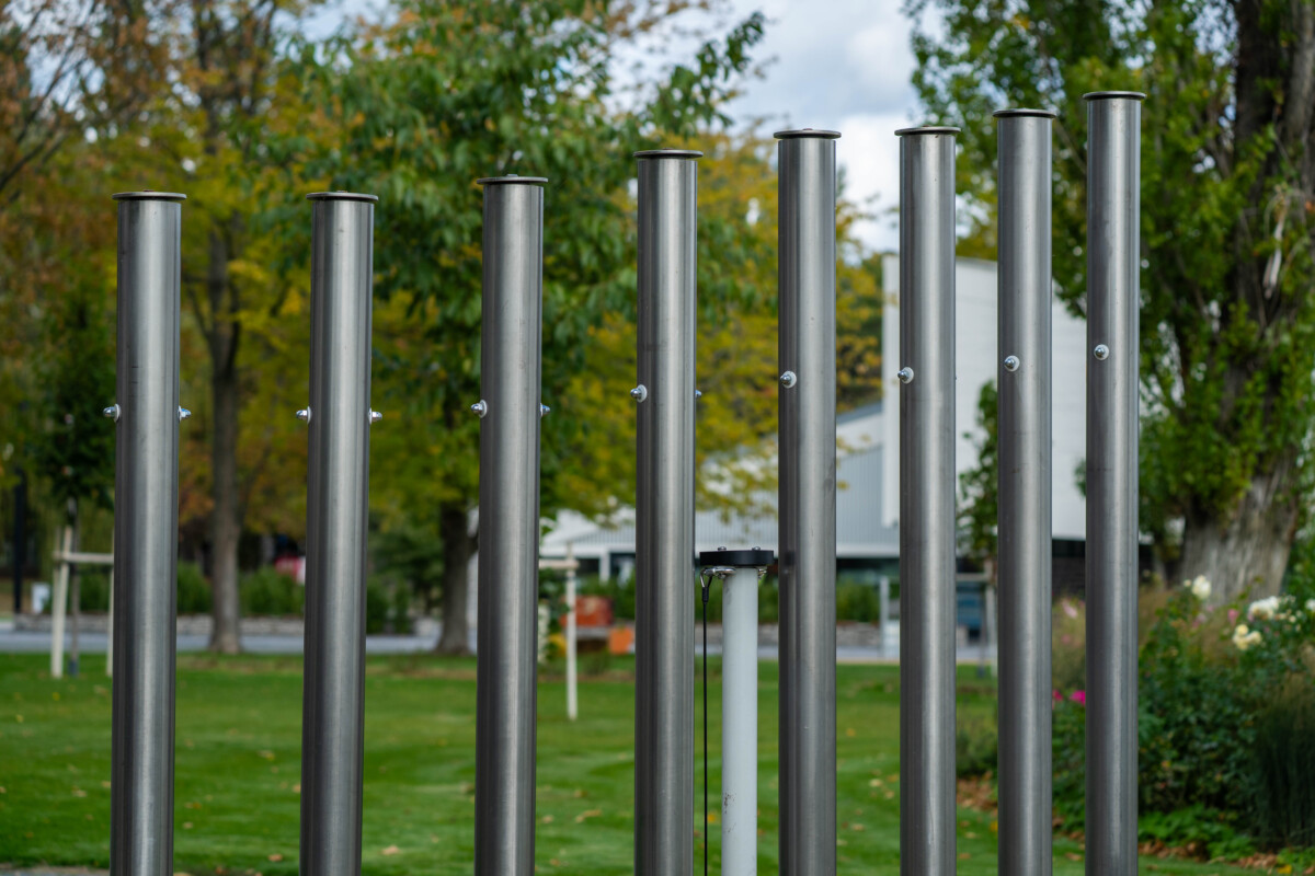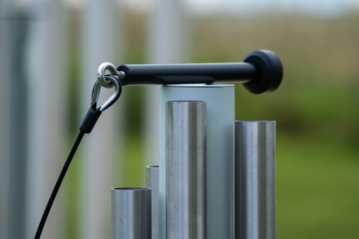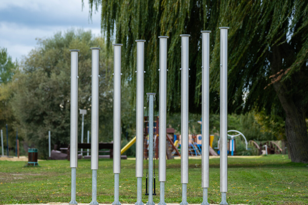 • Ø76 mm keresztmetszetű rozsdamentes acél csőváz, talajhoz alapozással rögzítve
