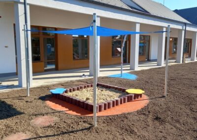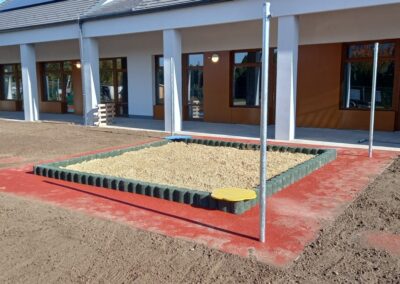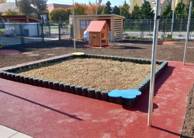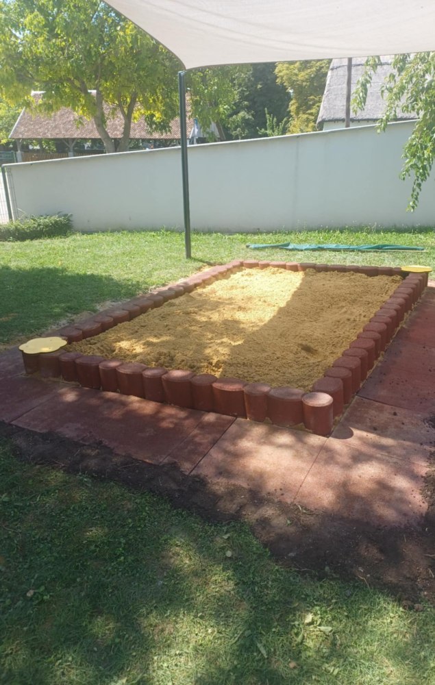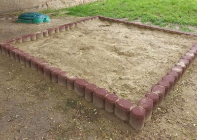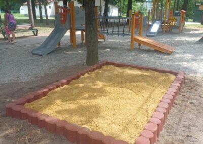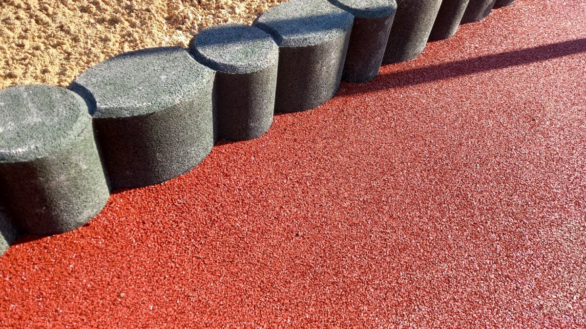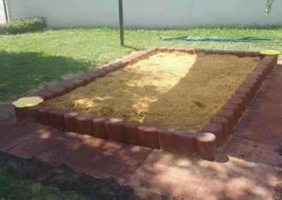 A gumi granulátumból készült homokozó határolóelemek elegáns szegélyt adnak a játszótereknek és homokozóknak.